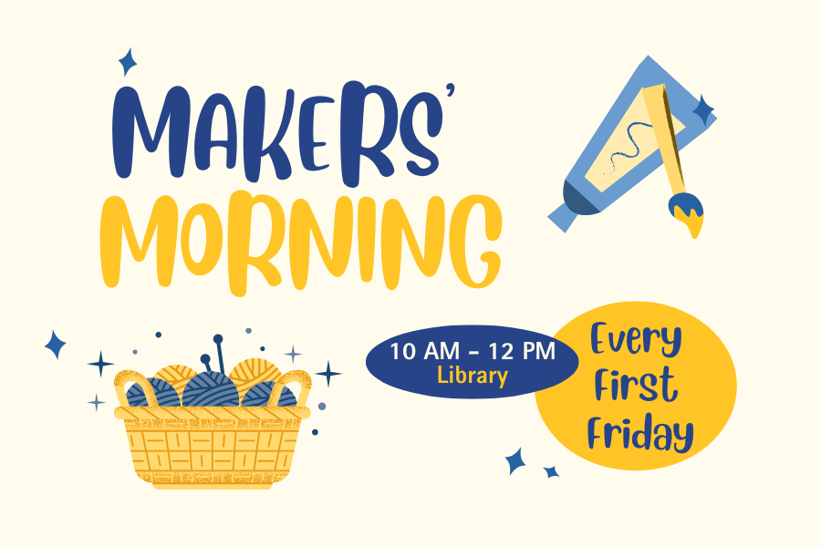 Join us for Makers’ Morning from 10 AM–12 PM in the Library—a cozy, creative gathering for crafters of all kinds. Whether you knit, sew, spin, crochet, scrapbook, or just love a good DIY moment, bring your project (and a friend!) for a relaxed morning of making, coffee, and conversation. No registration required, just show up! All ages and skill levels welcome!